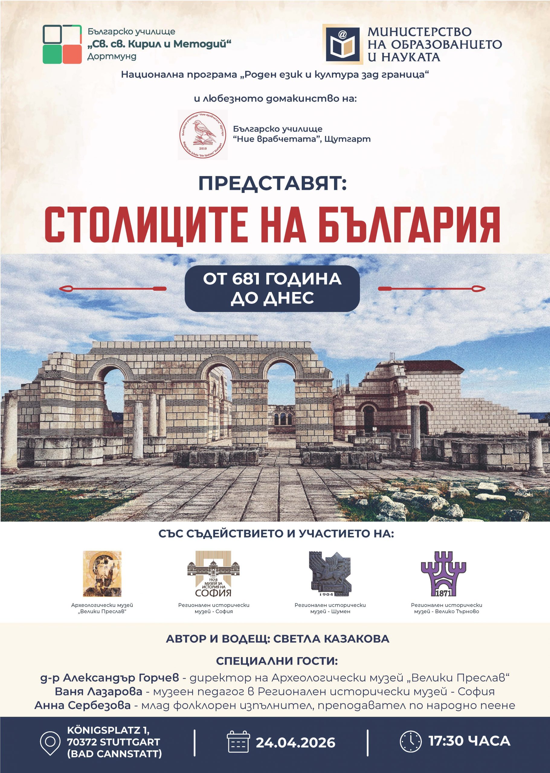 Българското училище „Ние врабчетата“ в Щутгарт търси мотивирани и родолюбиви учители за учебната 2026/2027 г. Информация и условия за кандидатстване може да видите в прикачения файл „ОБЯВА“. Българско културно дружество …